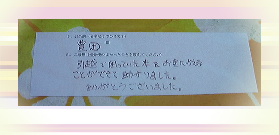「引越で困っていた本を買いとってくれてありがとうございました。」